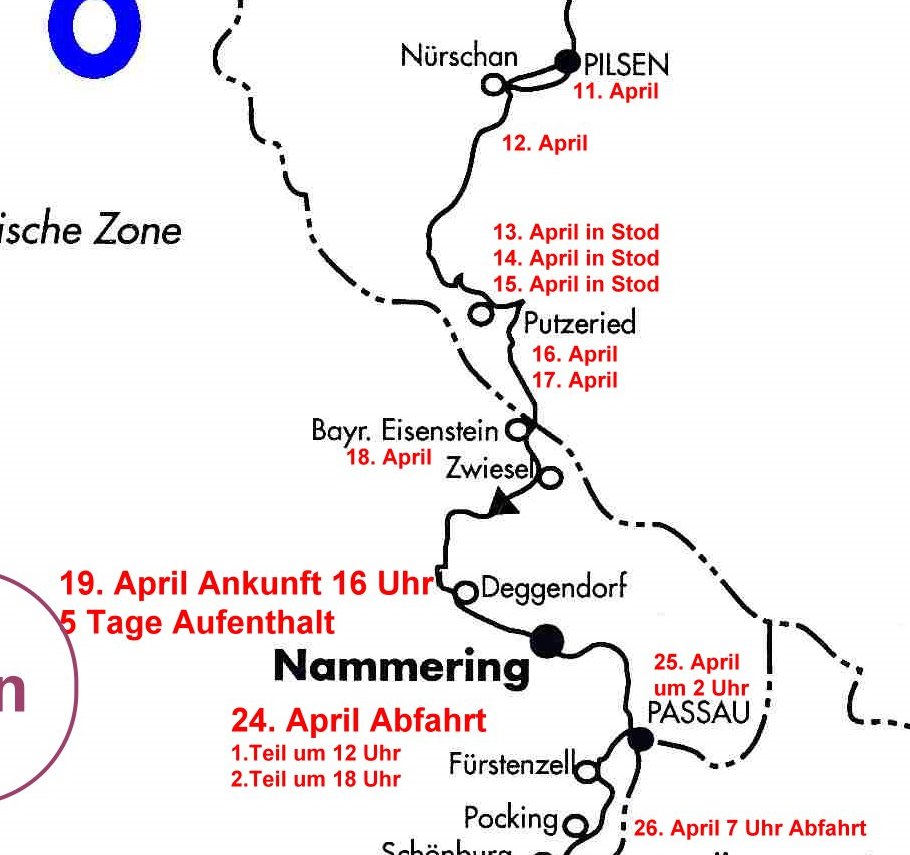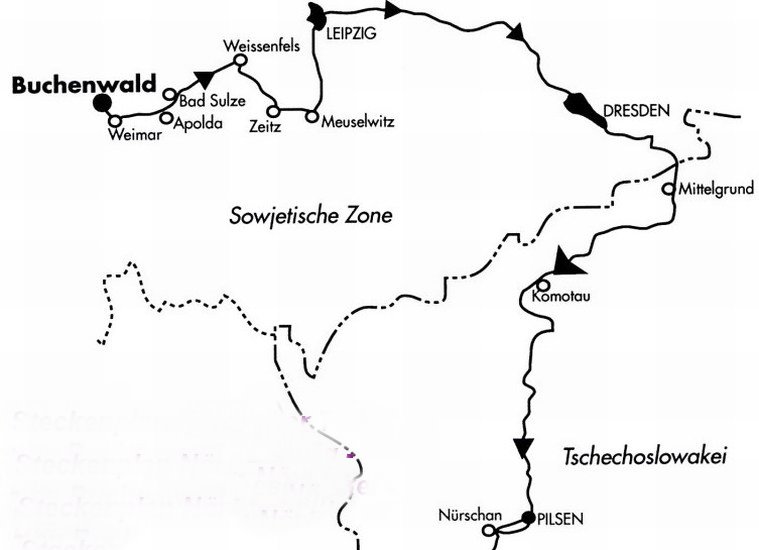 Statt Flossenbürg Umweg nach Osten bis nach Nammering Der Transportführer Hans Merbach lenkte den Zug weit nach Osten über Leipzig – Dresden, dann durch die Tschechoslowakei um den anrückenden Amerikanern auszuweichen. Project Project Project